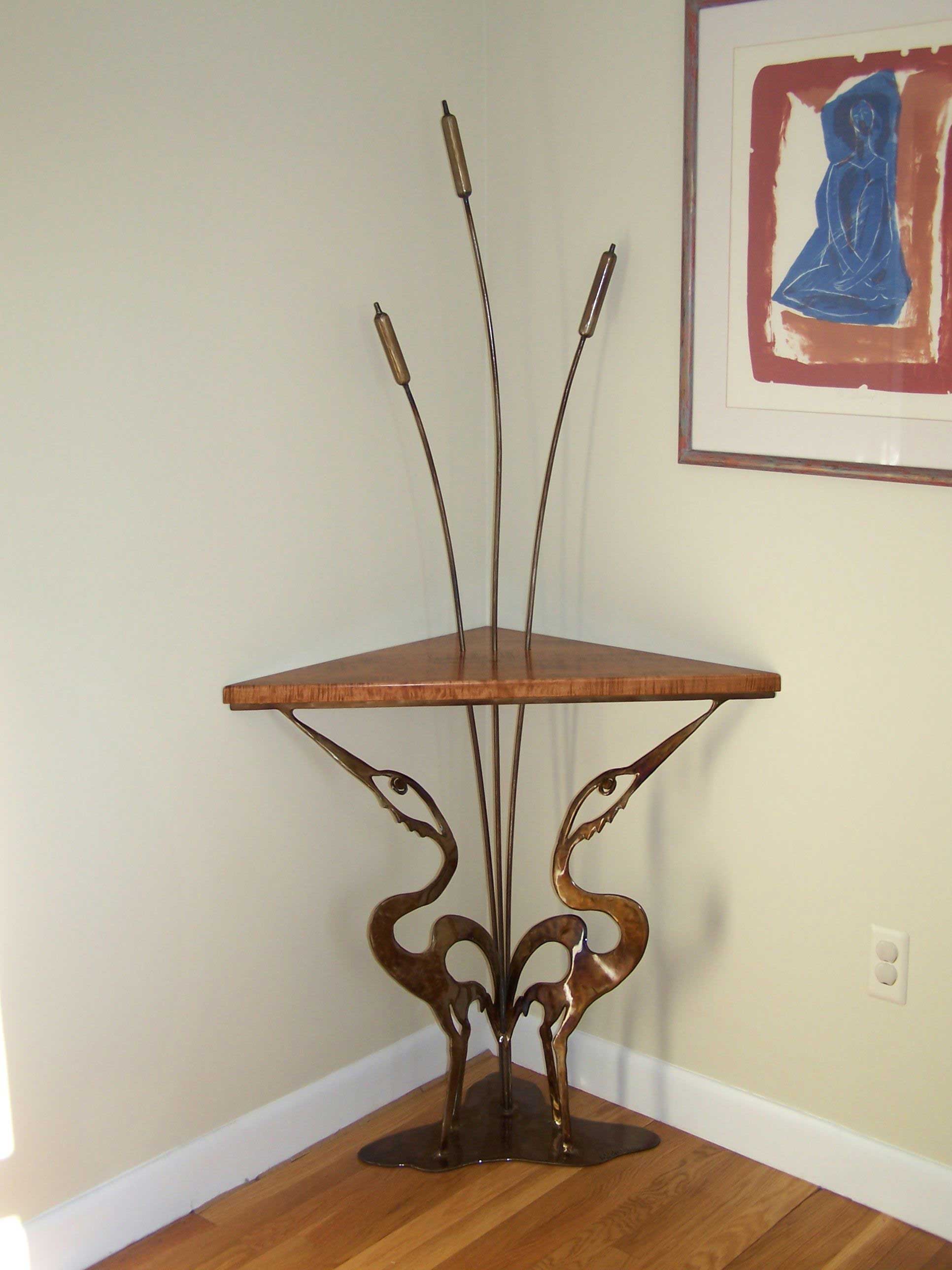 Corner Marshlife Table - Cattails through Mahogany Topcattails extend 6' through table |